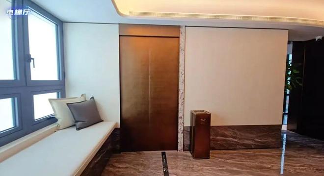除105㎡以外的大户型(117㎡、143㎡),均为这种子母门设计,非常大气。每户门旁都有一个带射灯、奢石背景以及项目LOGO的门牌号。