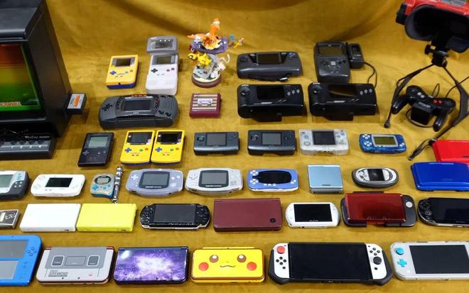 从老任的砖头GB、GBC、GBA到Switch,还有SNK的NGPC、万代的水晶天鹅、世嘉的GG和游牧民,甚至美国的Tiger掌机和雅达利掌机,但却漏掉了我手上的韩国GP32掌机以及罕见的横版GB掌机。